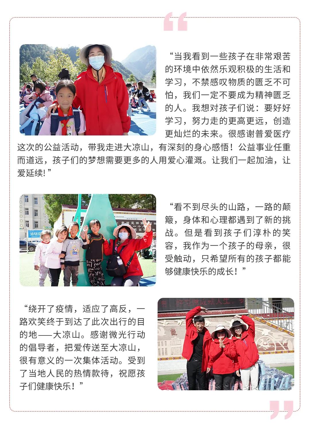 2021年微光行动以“浓浓普爱情,爱在大凉山”为主题,展开了家庭日慈善义卖活动、大凉山爱心助学、爱心助农、爱心帮扶等系列活动,把炙热的爱心送到美丽的大凉山。
