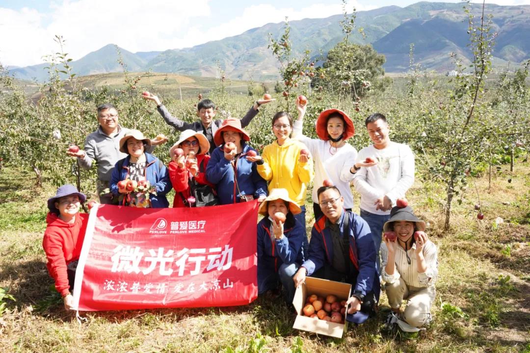 十月,正值盐源苹果收获的季节,为了帮果农打开销路,安心过冬,同时把新鲜采摘的盐源苹果回馈给普爱医疗的员工和会员俱乐部的会员们,公益团队亲自来到果园,帮助果农采摘苹果。