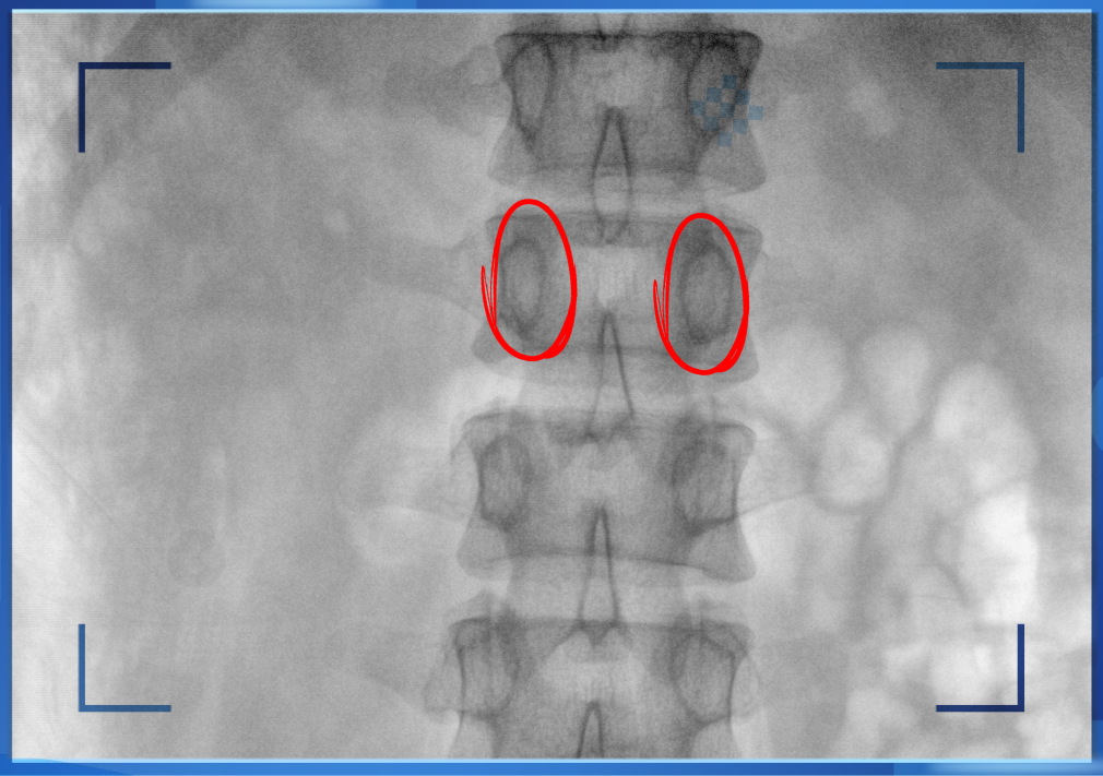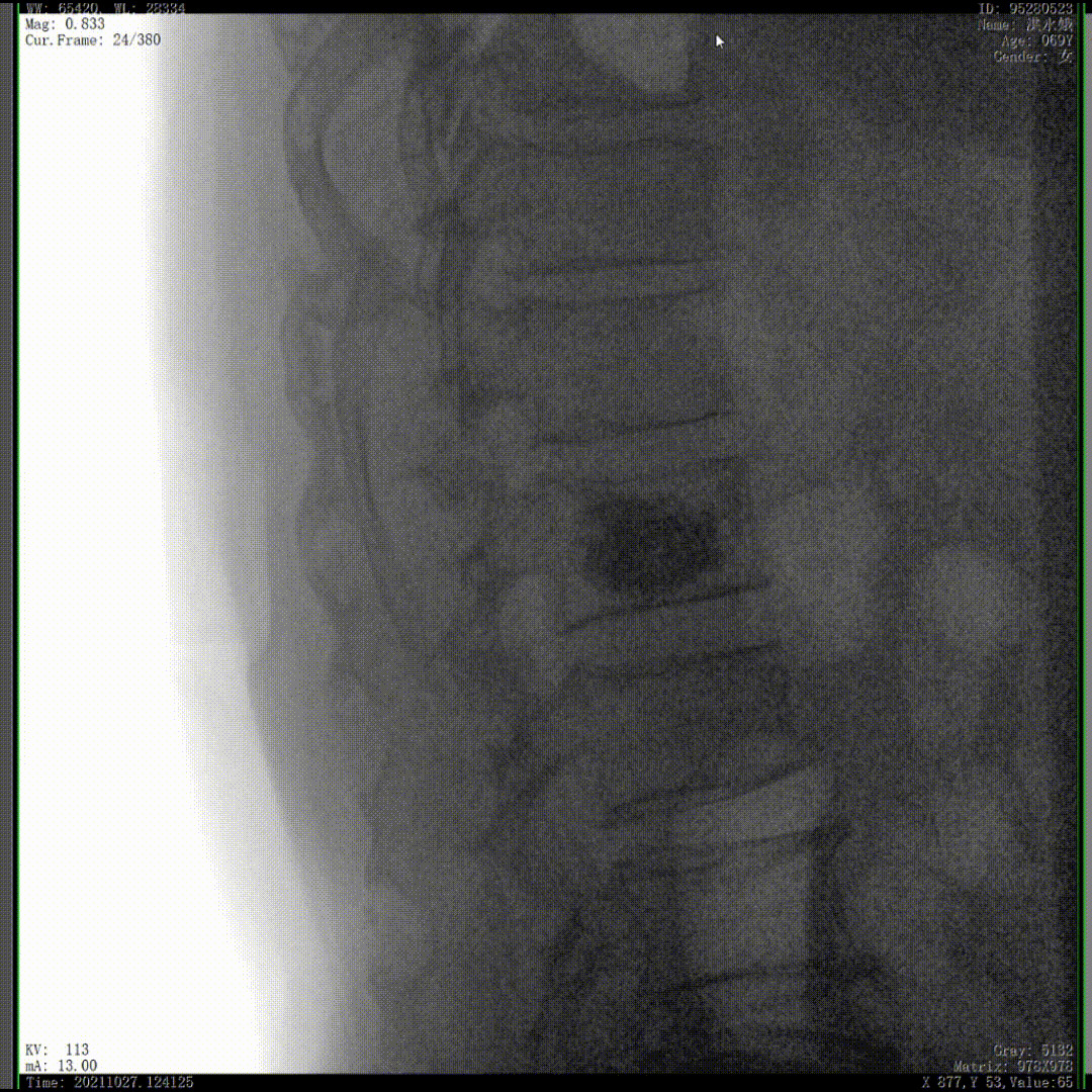 医生通常会在“猫眼”里寻找进针点和出针点,凭医生的经验把钉子打在椎弓根里。手术比较依赖医生的经验,万一出现偏差对病人来讲就是毁灭性的打击。如果在复杂的手术中有三维影像的支持,确保钉子精准的打在椎弓根里,可大大的提高手术操作的精度。