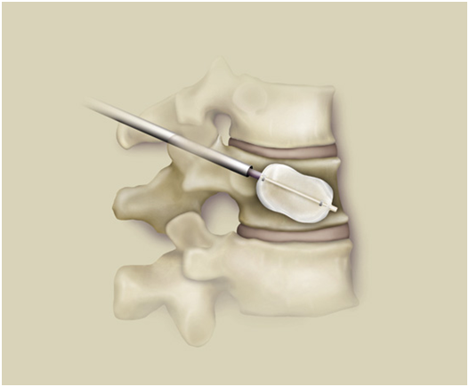 向空腔中注入骨水泥。椎体高度恢复,强度恢复。