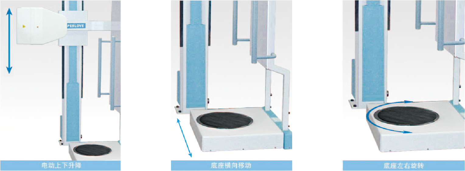 1、 电动上下升降、电动横向移动、电动旋转的功能,真正实现机动人不动的方式,使用方便、可靠。